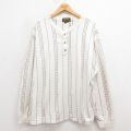 XL★古着 長袖 Tシャツ メンズ フクロウ 大きいサイズ ロング丈 コットン ヘンリーネック 生成り