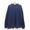 XL★古着 長袖 ビンテージ Tシャツ メンズ 00年代 00s 無地 大きいサイズ コットン ヘンリーネック 紺