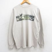 XL★古着 長袖 Tシャツ メンズ 大きいサイズ クルーネック グレー