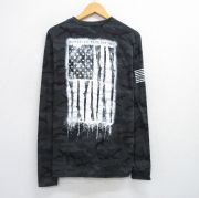 XL★古着 長袖 Tシャツ メンズ 星条旗 クルーネック 黒他 迷彩