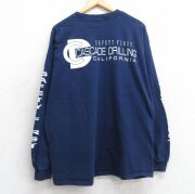 XL★古着 長袖 Tシャツ メンズ CASCADE DRILLING クルーネック 紺