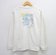 XL★古着 長袖 Tシャツ メンズ Star 星 クルーネック 白