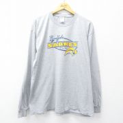 XL★古着 長袖 ビンテージ Tシャツ メンズ 00年代 00s NHL バッファローセイバーズ 大きいサイズ クルーネック 薄グレー 霜降り アイスホッケー