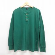 XL★古着 ランズエンド 長袖 ビンテージ サーマル Tシャツ メンズ 90年代 90s 無地 大きいサイズ コットン ヘンリーネック USA製 緑