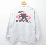 XL★古着 ガッチャ GOTHA 長袖 ビンテージ Tシャツ メンズ 90年代 90s ビッグロゴ コットン モックネック ハイネック USA製 薄グレー 霜降り