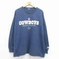 XL★古着 長袖 Tシャツ メンズ NFL ダラスカウボーイズ 刺繍 大きいサイズ コットン クルーネック 紺他 アメフト スーパーボウル