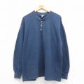 XL★古着 長袖 サーマル Tシャツ メンズ 無地 大きいサイズ ヘンリーネック 紺