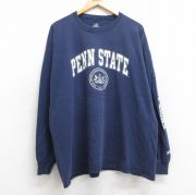 XL★古着 ラッセル 長袖 Tシャツ メンズ ペンシルベニア カレッジ 大きいサイズ コットン クルーネック 紺