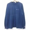 XL★古着 チャンピオン Champion 長袖 Tシャツ メンズ ビッグロゴ 大きいサイズ コットン クルーネック 紺