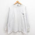 【商品名】 XL★古着 カーハート 長袖 ビンテージ Tシャツ メンズ 90年代 90s ワンポイントロゴ 胸ポケット付き 大きいサイズ クルーネック USA製 グレー 霜降り
