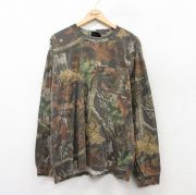 XL★古着 長袖 Tシャツ メンズ 胸ポケット付き 大きいサイズ クルーネック 茶他 迷彩