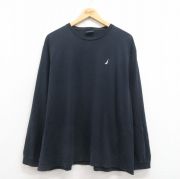 XL★古着 ノーティカ 長袖 ブランド Tシャツ メンズ ワンポイントロゴ 大きいサイズ コットン クルーネック 黒