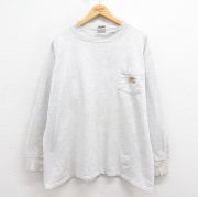 XL★古着 カーハート 長袖 ビンテージ Tシャツ メンズ 90年代 90s ワンポイントロゴ 胸ポケット付き 大きいサイズ クルーネック USA製 グレー 霜降り