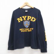 XL★古着 長袖 ビンテージ Tシャツ メンズ 00年代 00s ポリス 大きいサイズ コットン クルーネック 濃紺