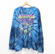 XL★古着 長袖 Tシャツ メンズ アニメ スポンジボブ 大きいサイズ コットン クルーネック 青 タイダイ