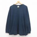 XL★古着 長袖 ビンテージ Tシャツ メンズ 90年代 90s 無地 コットン クルーネック USA製 紺