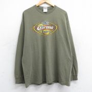 XL★古着 長袖 ビンテージ Tシャツ メンズ 00年代 00s コロナビール コットン クルーネック 緑系