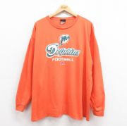 XL★古着 長袖 Tシャツ メンズ NFL マイアミドルフィンズ 大きいサイズ コットン クルーネック オレンジ アメフト スーパーボウル