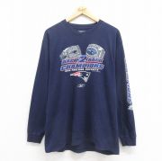 XL★古着 長袖 Tシャツ メンズ NFL ニューイングランドペイトリオッツ 大きいサイズ コットン クルーネック 紺 アメフト スーパーボウル