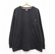 XL★古着 ディッキーズ 長袖 Tシャツ メンズ 無地 胸ポケット付き 大きいサイズ コットン クルーネック 黒
