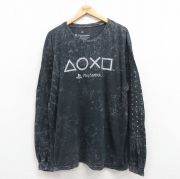 XL★古着 リップルジャンクション 長袖 Tシャツ メンズ ゲーム プレイステーション 大きいサイズ コットン クルーネック 黒 タイダイ