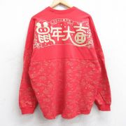 XL★古着 長袖 Tシャツ メンズ ディズニー ミッキー 鼠年大吉 大きいサイズ コットン クルーネック 赤