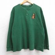 XL★古着 長袖 サーマル Tシャツ メンズ ディズニー くまのプーさん ティガー 大きいサイズ ヘンリーネック 緑