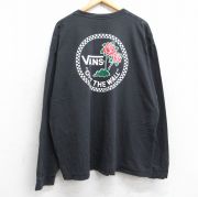 XL★古着 バンズ VANS 長袖 Tシャツ メンズ ビッグロゴ バラ 大きいサイズ コットン クルーネック 黒