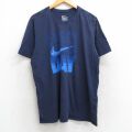 XL★古着 ナイキ NIKE 半袖 ブランド Tシャツ メンズ ビッグロゴ コットン クルーネック 紺 ネイビー 25jul01 中古