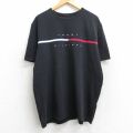【商品名】 XL★古着 トミーヒルフィガー 半袖 ブランド Tシャツ メンズ ビッグロゴ 刺繍 大きいサイズ コットン クルーネック 黒