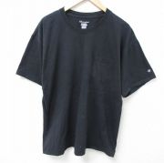 XL★古着 チャンピオン champion 半袖 ブランド Tシャツ メンズ 無地 胸ポケット付き コットン クルーネック 黒
