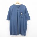 【商品名】 XL★古着 カーハート 半袖 ブランド Tシャツ メンズ ワンポイントロゴ 胸ポケット付き 大きいサイズ ロング丈 ヘンリーネック 紺 霜降り【spe】