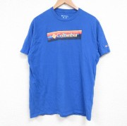 M★古着 コロンビア 半袖 ブランド Tシャツ メンズ ビッグロゴ コットン クルーネック 青