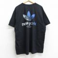 【商品名】 XL★古着 アディダス adidas 半袖 ブランド Tシャツ メンズ ビッグロゴ リーフ トレフォイル ニューヨーク 大きいサイズ コットン クルーネック 黒