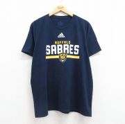 XL★古着 アディダス adidas 半袖 ブランド Tシャツ メンズ NFL バッファローセイバーズ 大きいサイズ コットン クルーネック 濃紺 アメフト スーパーボウル