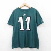 XL★古着 ナイキ NIKE 半袖 ブランド Tシャツ メンズ NFL フィラデルフィアイーグルス カーソンウェンツ 11 大きいサイズ コットン クルーネック 緑 アメフト スーパーボウル