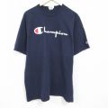 【商品名】 XL★古着 チャンピオン Champion 半袖 ブランド Tシャツ メンズ ビッグロゴ フロッキープリント コットン クルーネック 紺