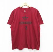 XL★古着 アディダス adidas 半袖 ブランド Tシャツ メンズ ビッグロゴ リーフ トレフォイル 大きいサイズ コットン クルーネック エンジ系