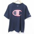 XL★古着 チャンピオン Champion 半袖 ブランド Tシャツ メンズ ビッグロゴ コットン クルーネック 紺 ネイビー 25apr01 中古