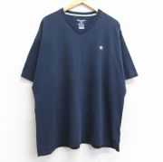 XL★古着 チャンピオン champion 半袖 ブランド Tシャツ メンズ ワンポイントロゴ 大きいサイズ コットン Vネック 紺