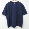 L★古着 トミーヒルフィガー 半袖 ブランド Tシャツ メンズ ワンポイントロゴ コットン クルーネック 紺