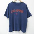 XL★古着 チャンピオン champion 半袖 ブランド Tシャツ メンズ ビッグロゴ コットン クルーネック 紺 ネイビー 25may26 中古