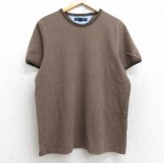 L★古着 トミーヒルフィガー 半袖 ブランド Tシャツ メンズ ワンポイントロゴ 鹿の子 コットン クルーネック 茶 リンガー
