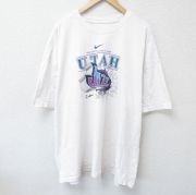 XL★古着 半袖 ブランド Tシャツ メンズ NBA ユタジャズ 大きいサイズ コットン クルーネック 白 霜降り バスケットボール