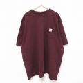 XL★古着 カーハート Carhartt 半袖 ブランド Tシャツ メンズ 胸ポケット付き 大きいサイズ ロング丈 コットン クルーネック エンジ 25jun18 中古