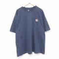 【商品名】 XL★古着 カーハート 半袖 ブランド Tシャツ メンズ 胸ポケット付き 大きいサイズ コットン クルーネック 薄紺