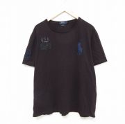 XL★古着 ラルフローレン 半袖 ブランド Tシャツ メンズ ビッグポニー コットン クルーネック こげ茶系