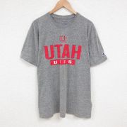 XL★古着 チャンピオン champion 半袖 ブランド Tシャツ メンズ ユタ 大きいサイズ クルーネック グレー 霜降り