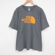 XL★古着 ノースフェイス 半袖 ブランド Tシャツ メンズ ビッグロゴ 大きいサイズ クルーネック グレー 霜降り