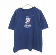 XL★古着 ナイキ NIKE 半袖 ブランド Tシャツ メンズ チャンピオンシップ 大きいサイズ コットン クルーネック 紺